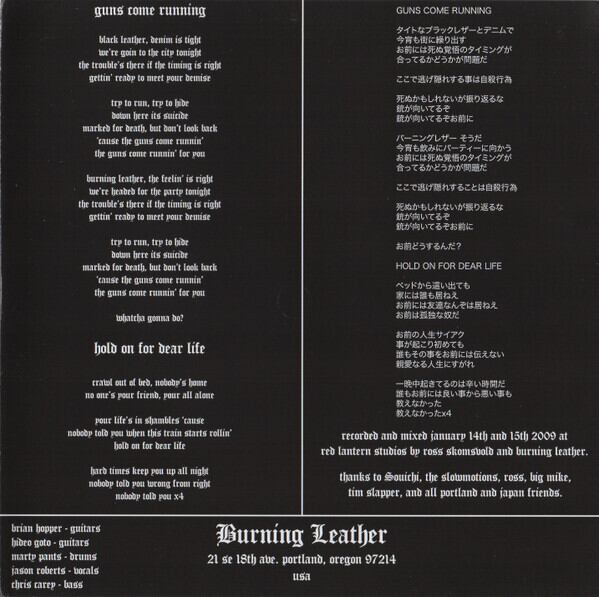 G.A.T.E.Sとのスプリット作でもお馴染みPDX HARDCORE、HELLSHOCK、DEFIANCEのメンバーからなる"バーニングレザー"のPDX産100%HARDROCK MOTORHEADサウンド。