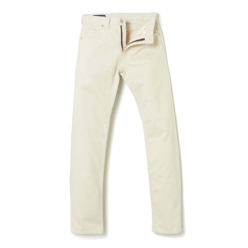 60年代の終わりにスキンヘッズに着用された、U.K.&ヨーロッパ市場向けに生産された極東製(香港)リーバイス502ジッパー・フライ・ジーンズの復刻品。US502とは異なり、やや浅い股上とタイトなヒップに仕立てられでおり、渡りから裾にかけてほほ真っすぐに落ちるレッグラインが特徴のスリムストレート・ジーンズです。