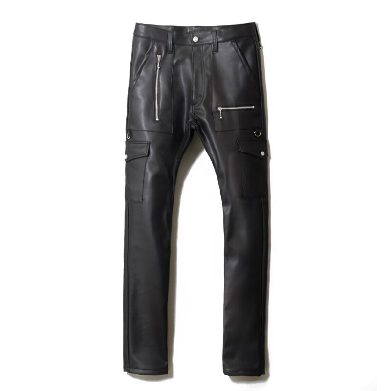ロングセラー商品の合皮素材を使用したFAUX LEATHER JEANSSの素材を より分厚くしっかりとした本革に近づけ、LONDON SLIM JEANSのシルエットにしたジーンズ