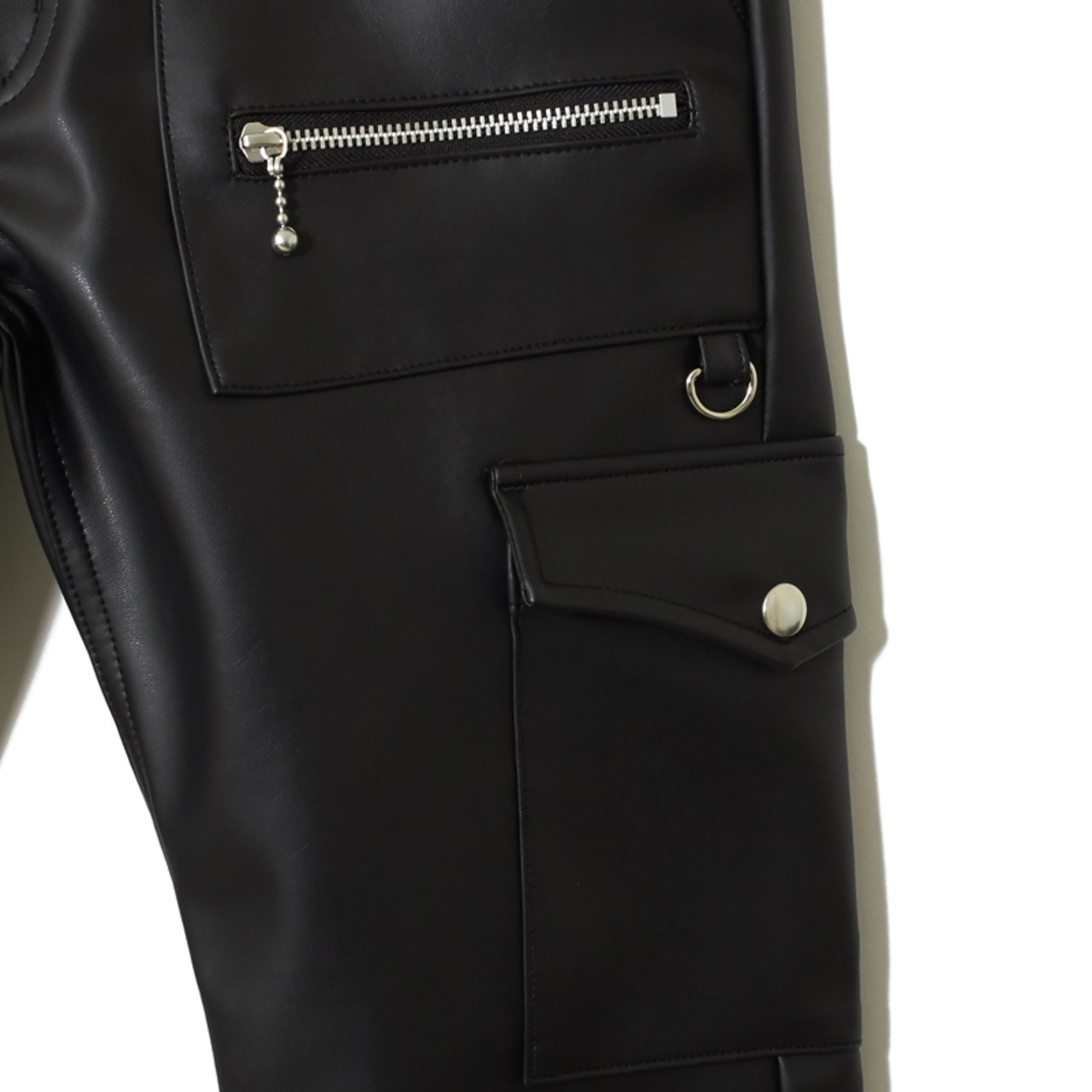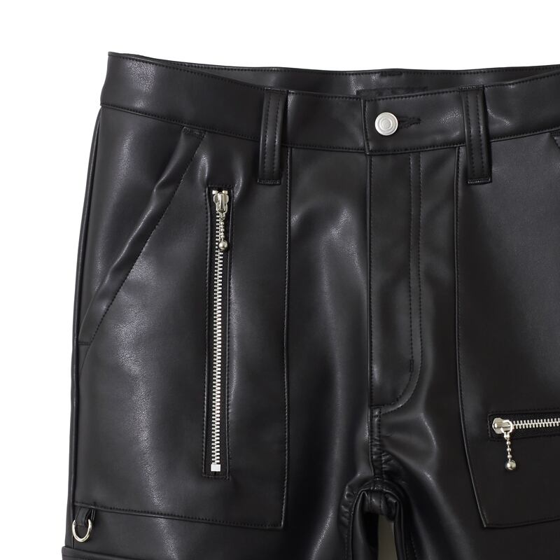 MAX FAUXレザーロンドンスリムジップジーンズ